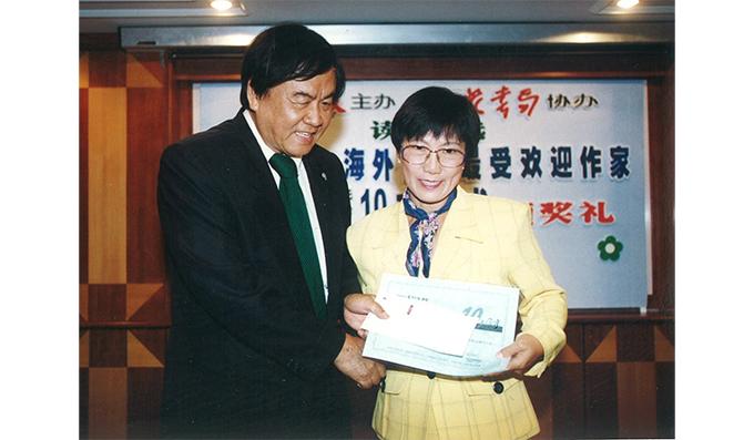 除了受邀出席報社舉辦的一些重要的藝文活動外,我們與社長交集過程中印象最深刻的,莫過於一九九九年,當我再度榮獲國內「十大最受歡迎的作家」之一的頒獎禮上,親自給我頒獎的,正是張曉卿社長。