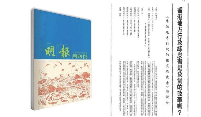 〈香港地方行政綠皮書是政制的改革嗎?〉刊於《明報月刊》一九八○年七月號。