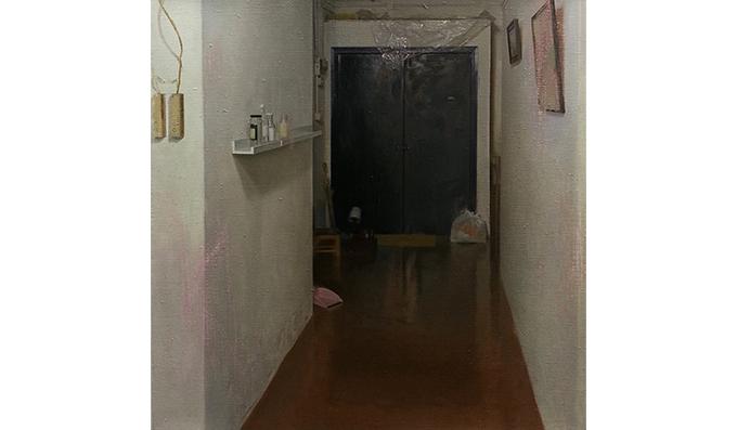胡浚諺描畫房間居所,透過家具、杯碗、桌椅、窗戶、光線形成的層次與氛圍。繪畫是他與生活連繫的一種方式,以近乎記錄式的方式日復一日描繪對象,相信也多少能把對生活的感受投射在畫面上,在平凡的日常事物中尋找生命的痕跡。