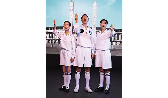 左起:衞駿輝(女文武生)、黃德斌(首次演摩登粵劇)及羅妍(新進女文武生)在摩登粵劇《頂頭鎚》中的精彩造型!(林爽兒提供)