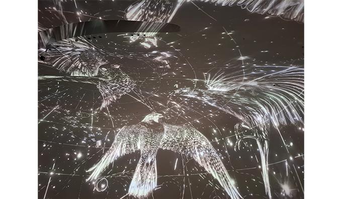 循跡而上,一幅八分鐘的影像長卷似動態岩畫鐫刻在室內穹頂之上。該影像以「遷徙」為核心展開深邃沉思—關乎飛鳥、人類、山巒與磁場的動態圖景,英國作曲團隊Polyphonia創作的音律,為這份沉思奠定成悠遠的吟唱。展覽的巧思在於它讓觀眾手中的素描完成一場蛻變:從一件紀念信物,化為一顆象徵希望的「種子」,觀眾將它傳播至四方。這張承載筆觸、思想微光與情感溫度的紙片,從倫敦到深圳,再奔赴世界各處,凝聚成一份跨越山海的遷徙記憶。